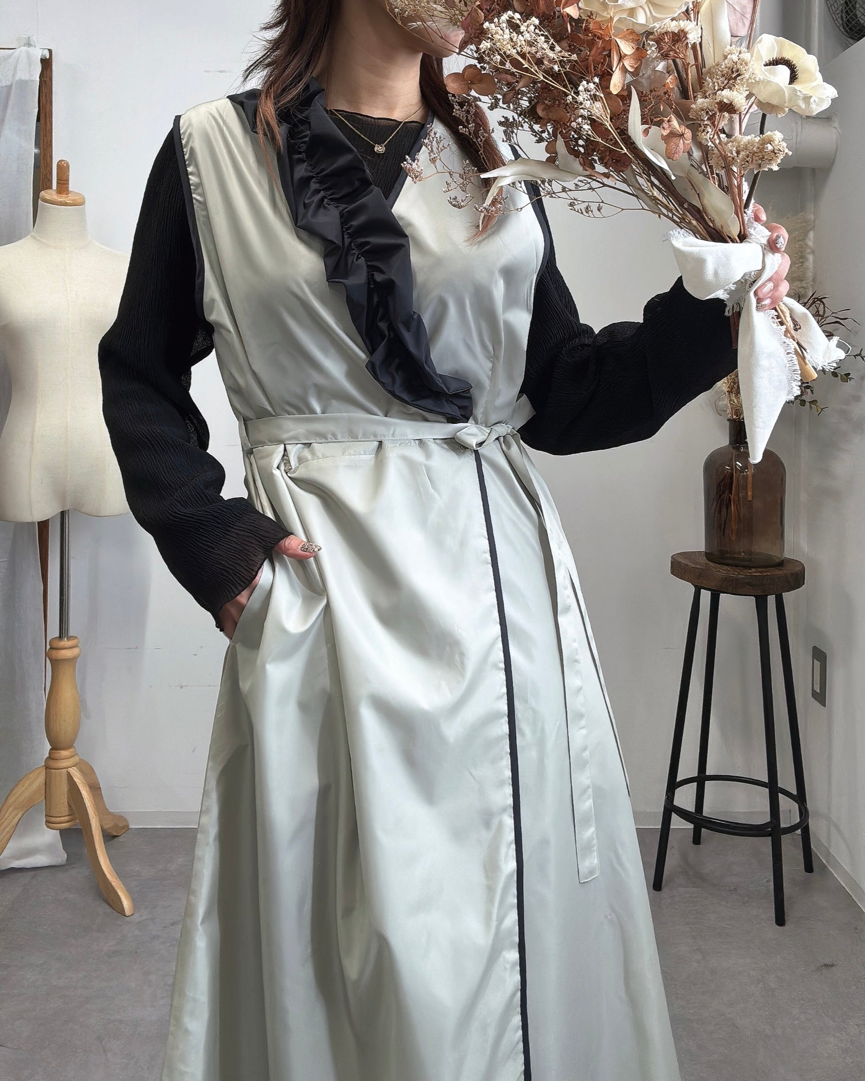 アシメフリルエプロンドレス light gray